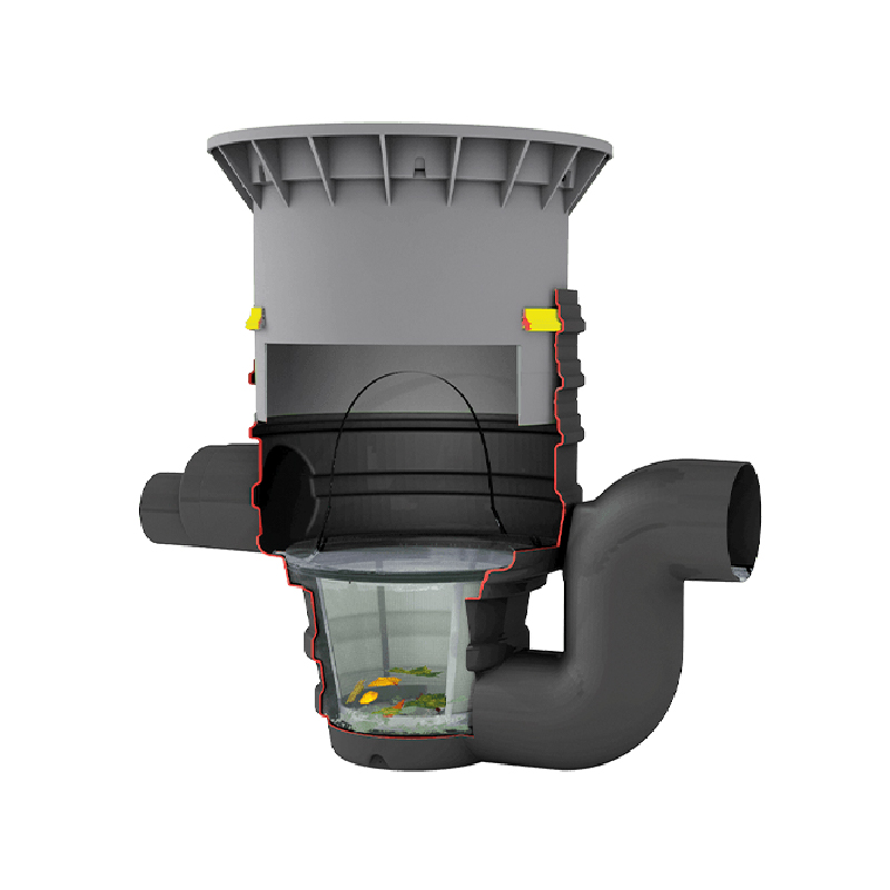 Jednoduchá filtrace nečistot, které jsou splaveny do nádrže. Koš se instaluje dovnitř podzemní nádrže na dešťovou vodu pod nátokové potrubí pomocí řetězu. Spolehlivě zachytí větvičky, listí a nečistoty do velikosti 0,5 mm (podle typu filtru).