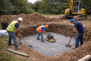 Výkop a příprava podloží patří mezi nejdůležitější fáze celé instalace. Pokud se tato část podcení, problémy se obvykle projeví až po dokončení, kdy je jejich řešení složitější a nákladnější. Základem je rovné a dostatečně zhutněné dno výkopu, které zajistí stabilitu celé jímky.